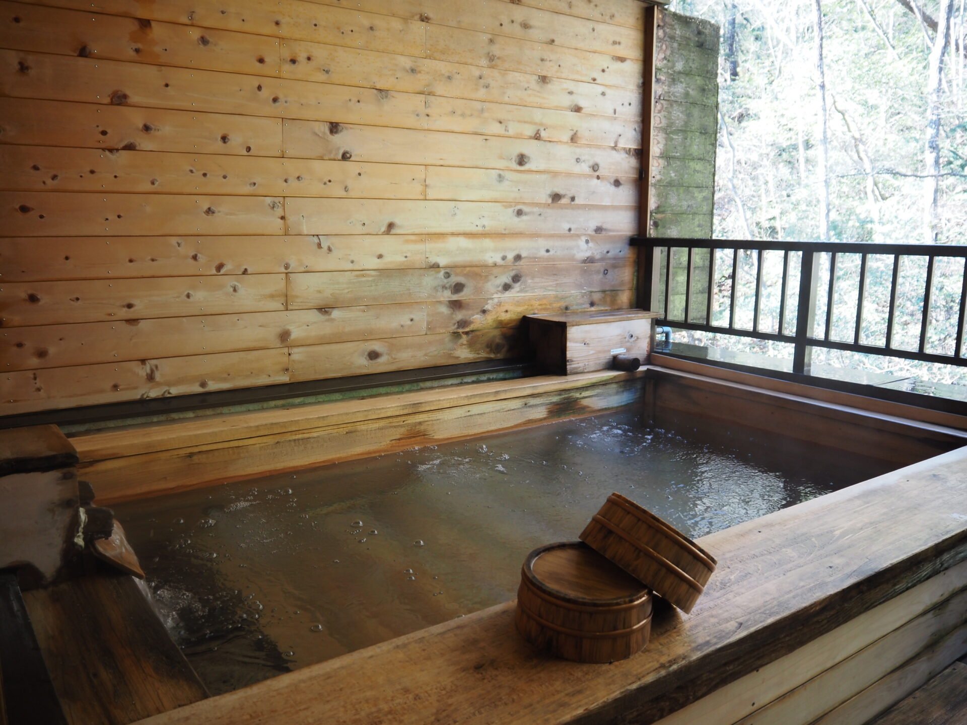 冬は閑散期なのか平日もあってか、この日の宿泊はウチらも含めて2組のみのようで……貸し切り露天風呂なども入りたい放題!
